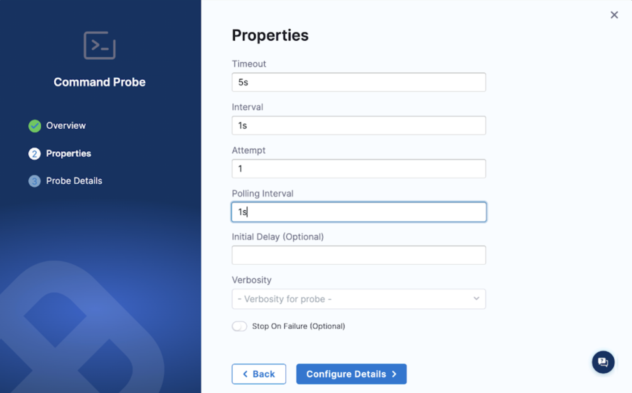 3. Create a new command probe, add the necessary details, and select Configure Properties.