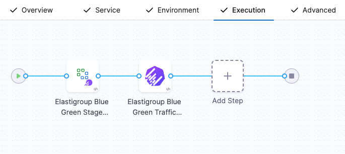If you do not select the Add Traffic Shifting Steps checkbox, then your execution tab will include Elastigroup Blue Green Setup and Elastigroup Swap Route.
