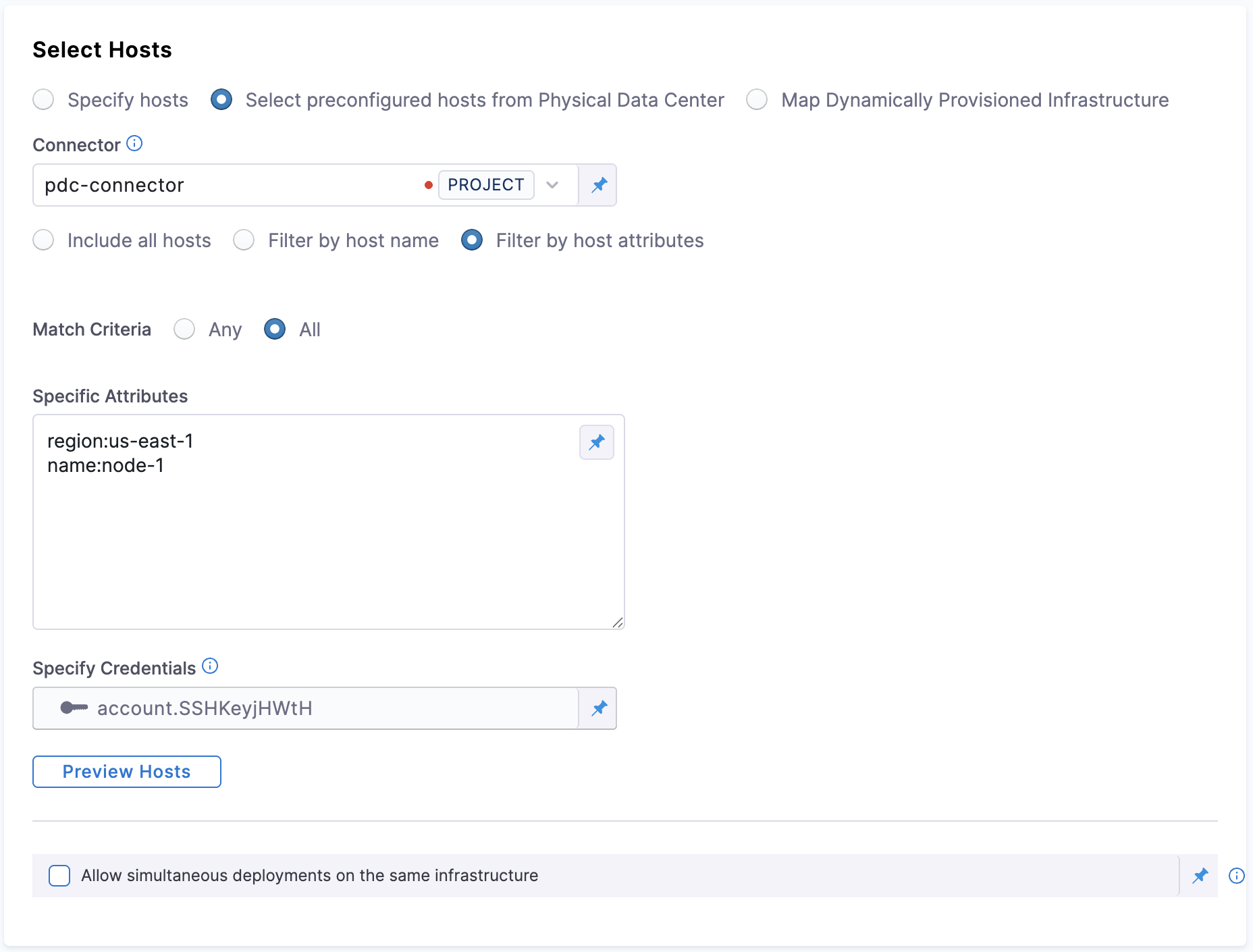 When you set up the Infrastructure Definition for the stage, there are three options for selecting the target hosts: