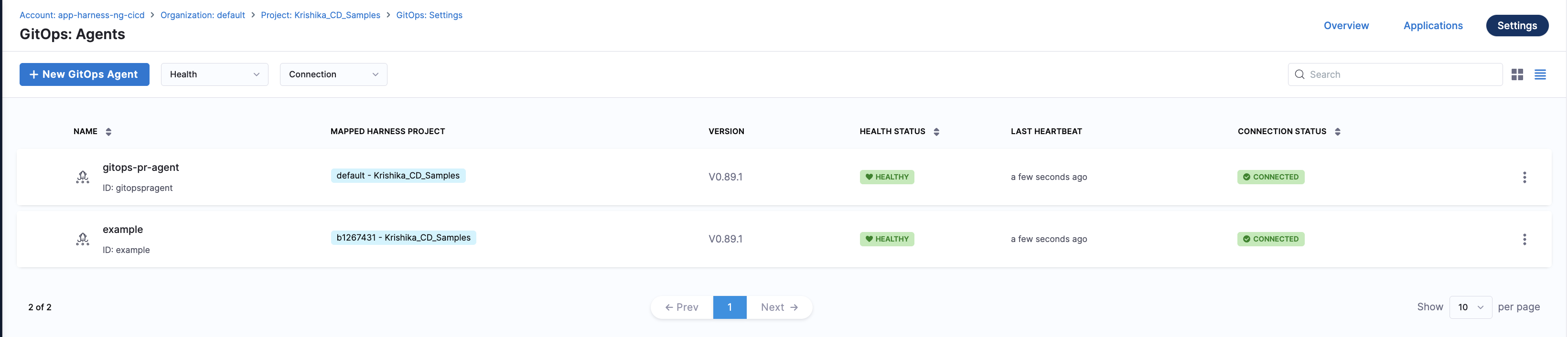 With Harness GitOps, multiple agents can run within a single Harness project. Harness is not limited to a single agent instance—you can deploy multiple agents across different scopes or clusters, enabling you to manage more applications and environments than a standard Argo CD setup.