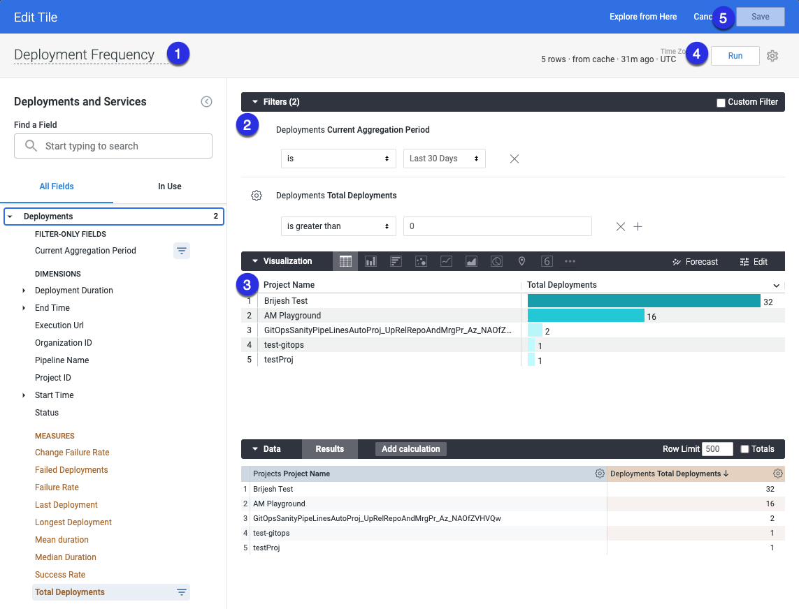 - Deployments Frequency tells you how many deployments happened in a particular duration. This metric helps measure the consistency of software delivery and delivery performance.