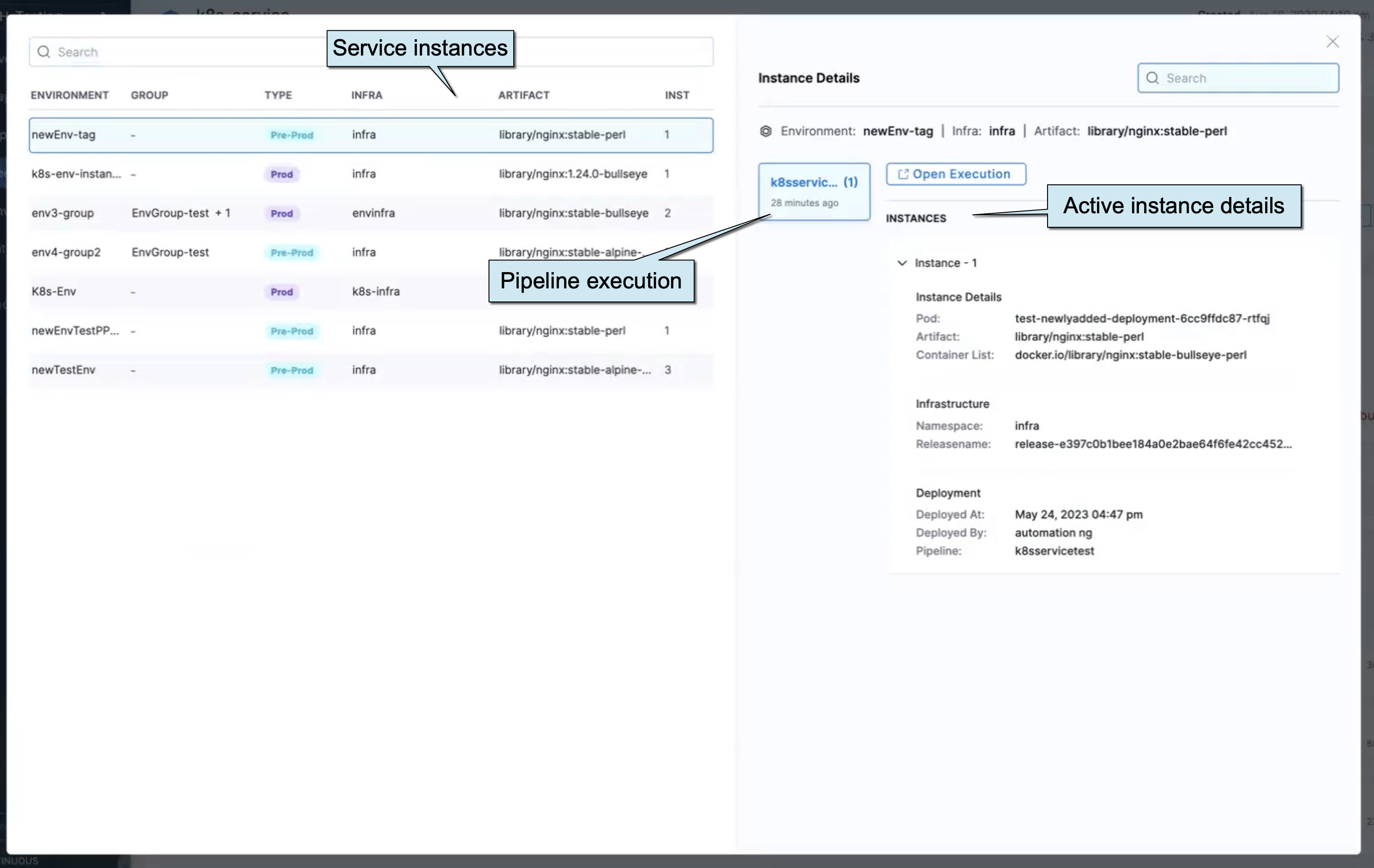 - Clicking the artifact name opens details for all environments where the artifact was deployed.