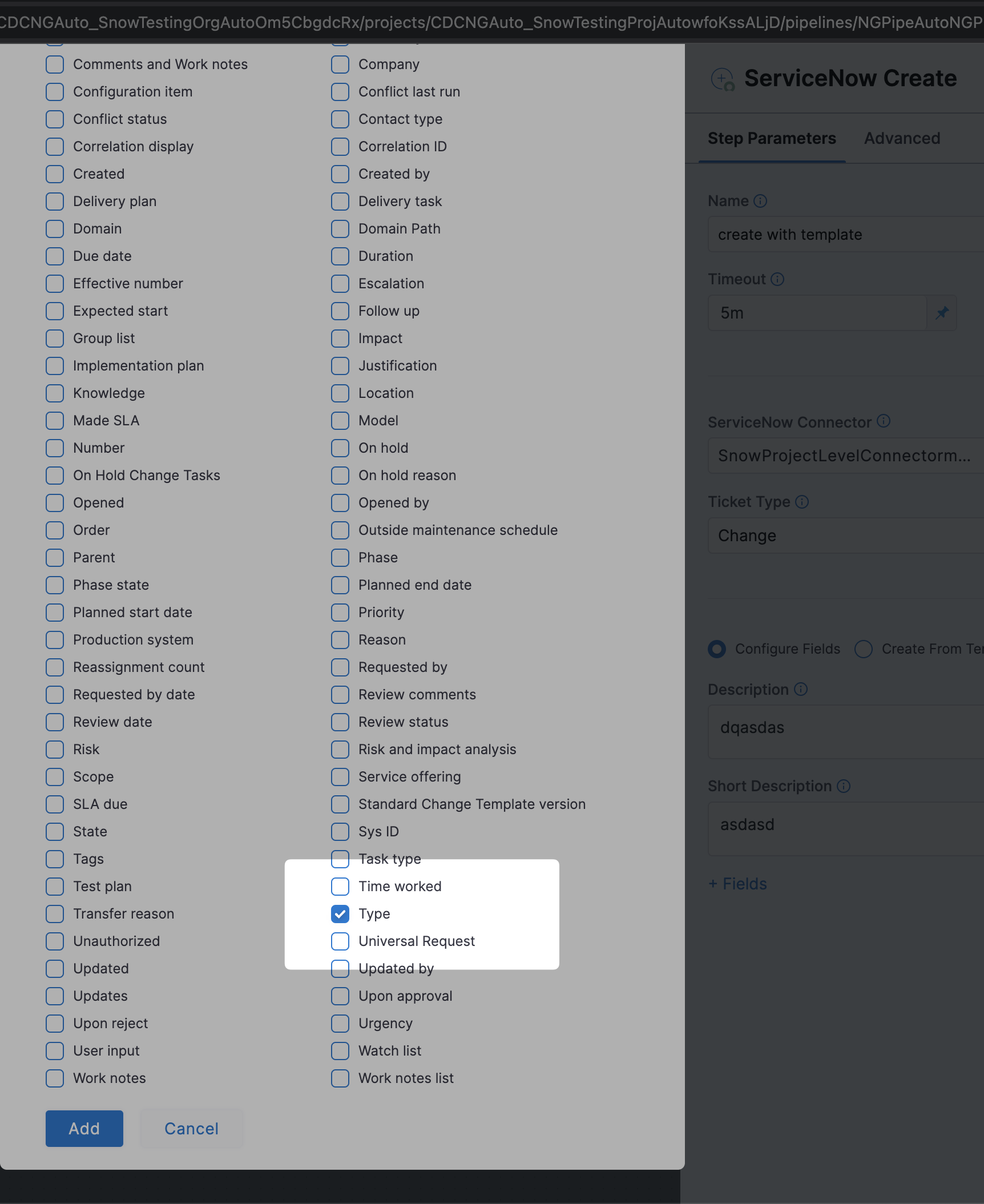- You must add a Harness ServiceNow connector before or during the Create ServiceNow step setup.