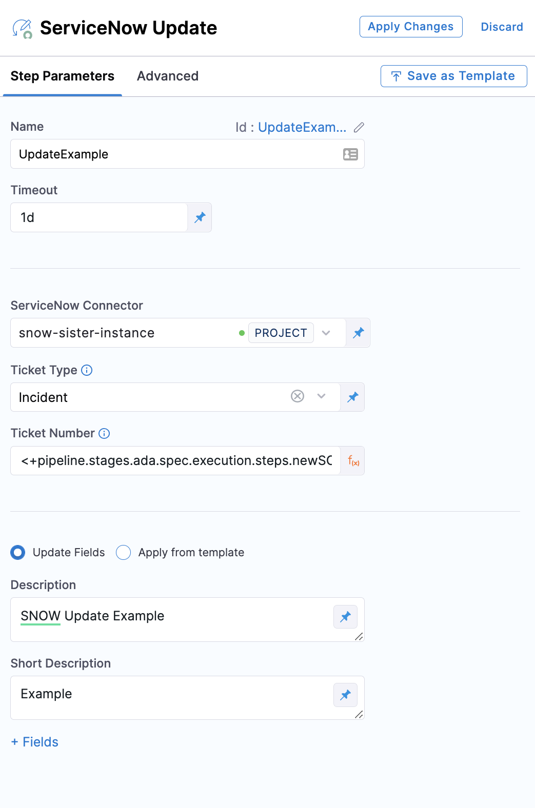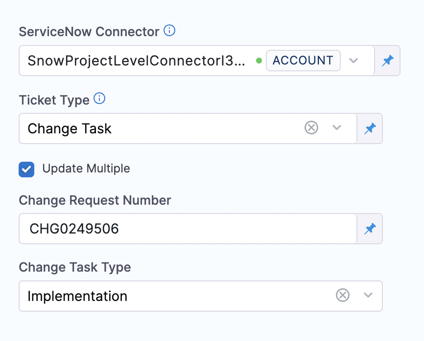 Harness provides the ability to update ServiceNow change requestsincident tickets, change tasks, and problem type from your Pipeline step using the ServiceNow Update step.