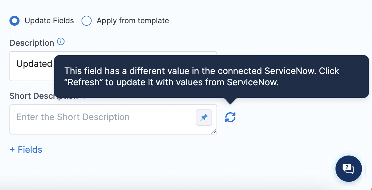 • If the value of a field has changed in ServiceNow, Harness includes a refresh icon that you can select if you want the field to show the updated value. Harness does not automatically update the field with the latest value.