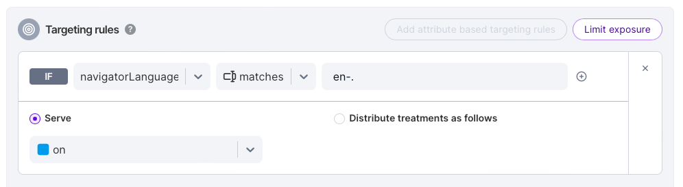 1. Complete the targeting rule by filling in the values to match against and choosing the treatment(s) to serve.
