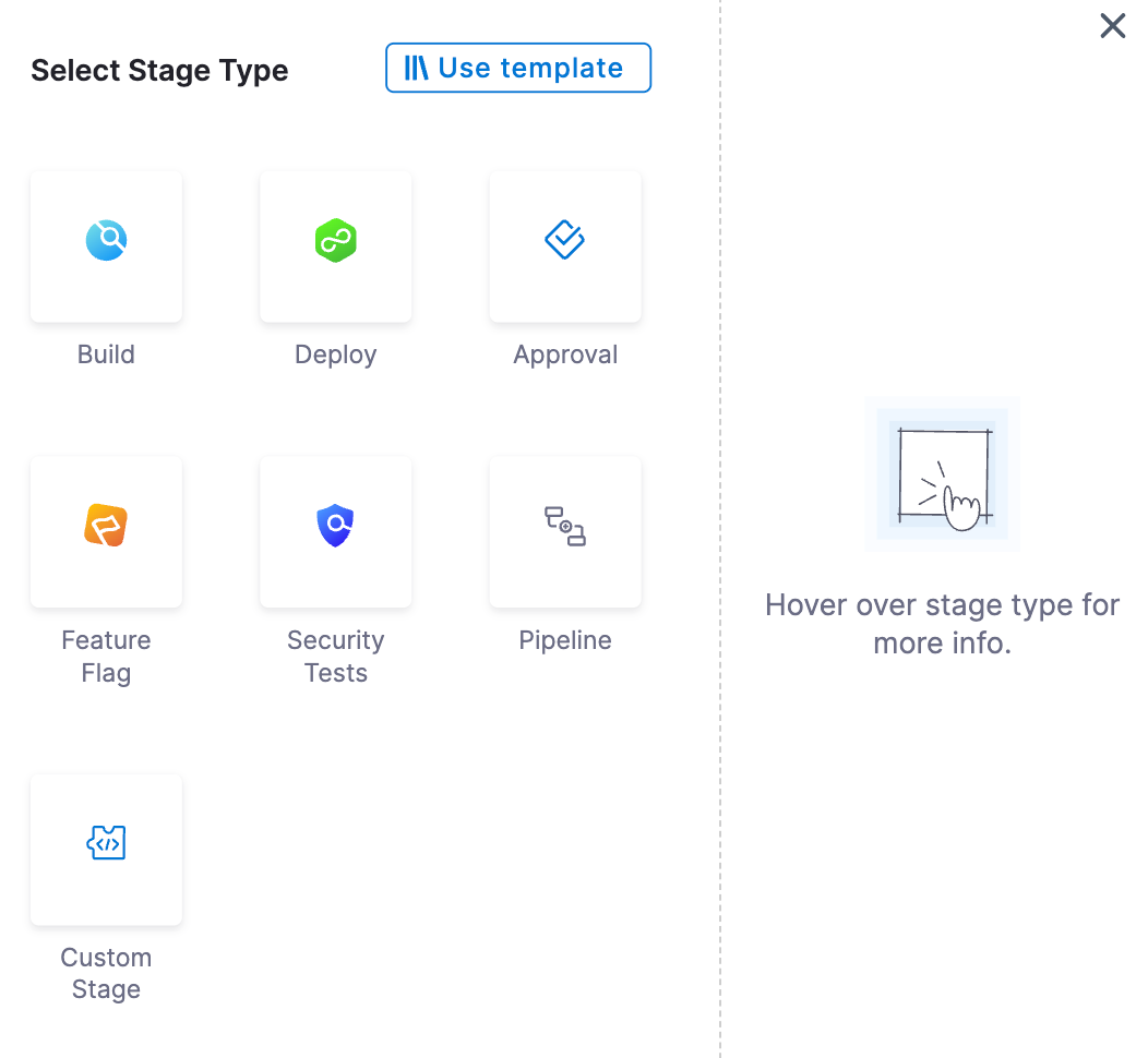 If a specific module or stage type isn't shown, make sure the module is enabled in your project. For more information, go to Create organizations and projects.