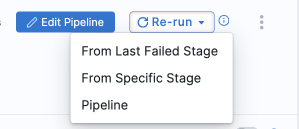 On the first run, a user provides poc.11 as the release version. On re-running, they specify poc.13. Expected Outcome: If re-run From Last Failed Stage, the pipeline may still use poc.11 due to cached metadata. Selecting From Specific Stage will correctly apply poc.13.