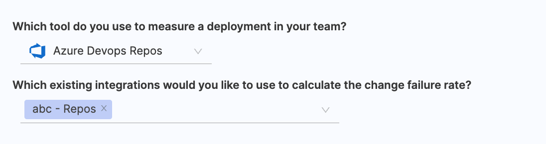 - Choose Azure Repos as the tool that you use to measure change failure rate in your team.