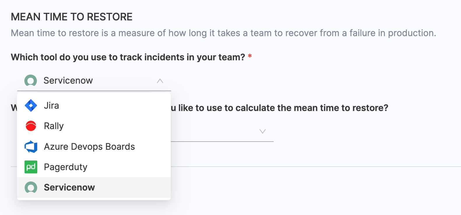 - Choose ServiceNow as the tool that you use to measure change failure rate in your team.