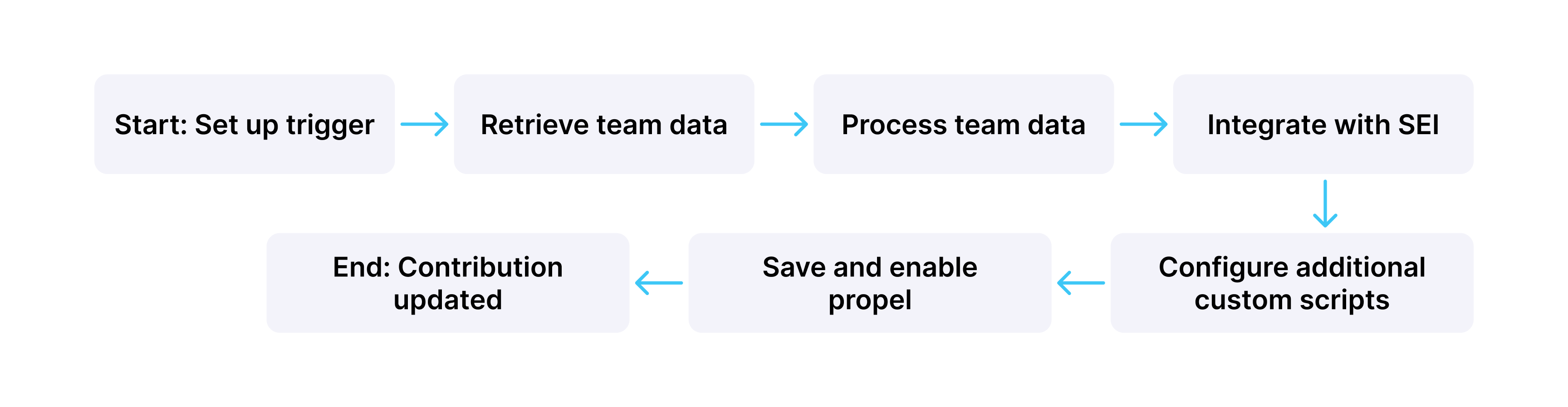 Organizations with large developer teams (300-2000+) can use Propels, SEI's automation framework, to automate contributor data updates. Propels allow you to create custom workflows to interact with various services.