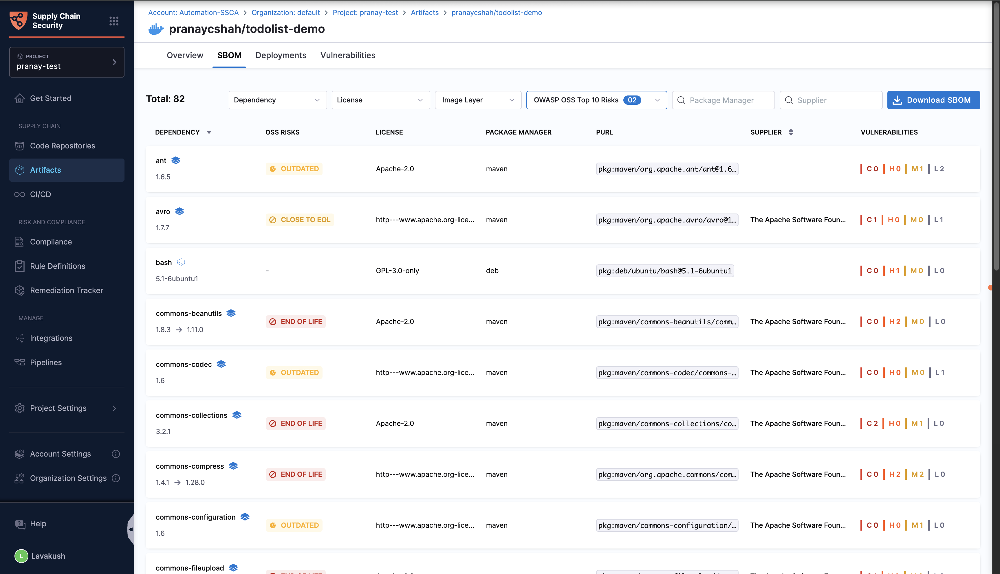 Compliance Section: A new Compliance section to assess and understand the risk posture of your entire supply chain. Detailed information is available in the Manage Compliance Posture documentation.